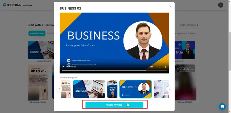 Step 3: Click on “Create AI Video” to start the video creation process.