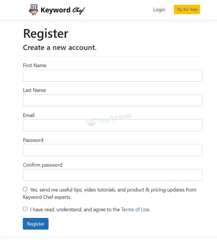 Step 1: Go to Keyword Chef and click on the yellow button at the top—right corner named “Try for Free”.