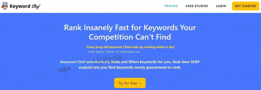 Keyword Chef finds keywords using a very unique algorithm. It provides keyword ideas based on the ingredients that you input while searching. This is a creative way to generate ideas and the best part is everything is in your hand here. It doesn’t mean that you manually have to find low-competitive keywords. It also analyzes SERP automatically and finds your niche keywords.